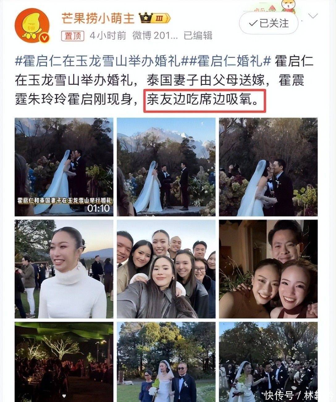 直至11月中旬,一位亲近友人悄然发布现场照片,才揭开这场秘境仪式的全貌—— 选址玉龙雪山堪称匠心独运,近年来越来越多顶级家族逐渐告别欧洲古堡式奢华,转而青睐丽江这类自然纯净的隐世之地。 令人忍俊不禁的是,宾客们一边享用婚宴佳肴,一边还需佩戴便携氧气瓶补充供氧,毕竟海拔高度不容小觑。