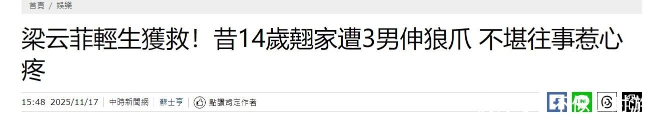 梁云菲曾坦言,离家期间曾遭遇性侵,但由于当时属于失踪人口身份,害怕惹上更大麻烦而不敢报警,只能独自承受痛苦记忆。