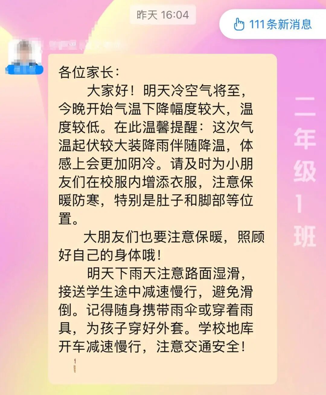 班级群里的温馨提醒